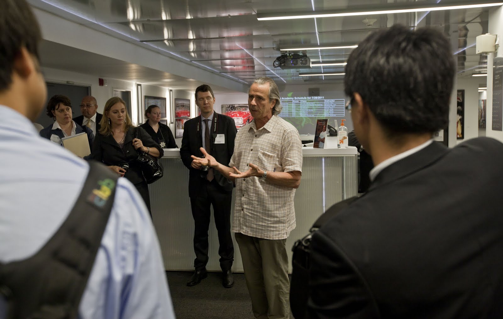 The first stop was Tribeca Flashpoint Media Arts Academy in downtown Chicago. This visually stunning “working lab” aims to erase the boundaries between the classroom and the real world; churning out everything from music videos and video games to graphics that burst into flame – no kidding. The school already has real-world clients with names like Beyonce, Microsoft, Tyra Banks and McDonalds. Tribeca Flashpoint CEO Howard Tullman gave a tour to the throng of fascinated journalists that showcased just how cutting-edge Chicago’s next generation of media arts graduates will be.