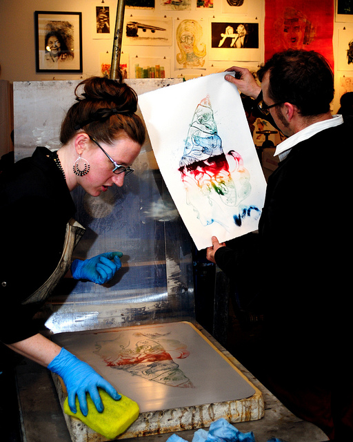 After the cocktail hour we were rushed out of the building and onto the after-party at bar M-15 on Walker Street. The class of 2012 and 2013 had many drinks and many dances. Meanwhile, back at the Academy, Robert DeNiro was being honored at the Tribeca Ball dinner for his years of continued support of the arts. He was met by friends like Harvey Keitel and Mary-Kate Olsen, among others. See some selected photos, featuring some artist studio shots, from the night below. See full set of photos by Maria Teicher at on our flickr page here.