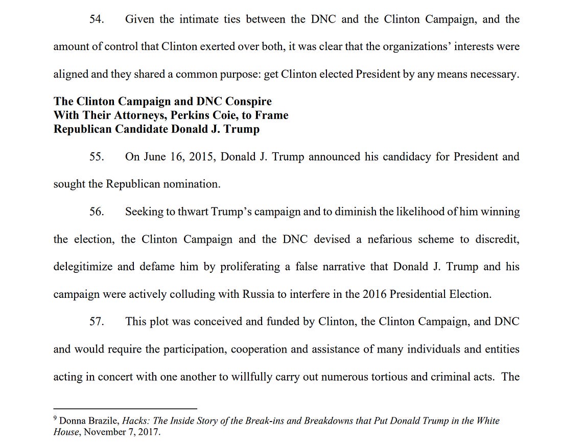 The case they cooked up was a manic stringboard, alleging a racketeering conspiracy between the Clinton campaign, the Democratic National Committee, and the “Deep State” FBI. They were all in on a dastardly plot to publicize the Steele dossier, gin up the Russia investigation, and ruin Trump.