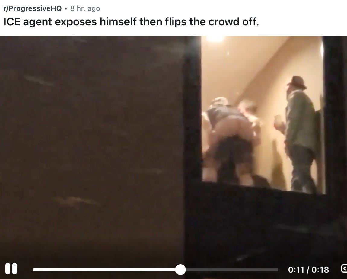 The agent who flashed his naked butt out of a hotel window at a crowd of protestors before flipping them the bird has drawn little attention, perhaps because it seems so tawdry and unimportant against the backdrop of violence ICE has brought to the city. But it’s a worthwhile reminder that “Operation Metro Surge” was not conducted with the professionalism that taxpayers, who pay agents’ salaries, benefits, and expenses, are entitled to expect from them.