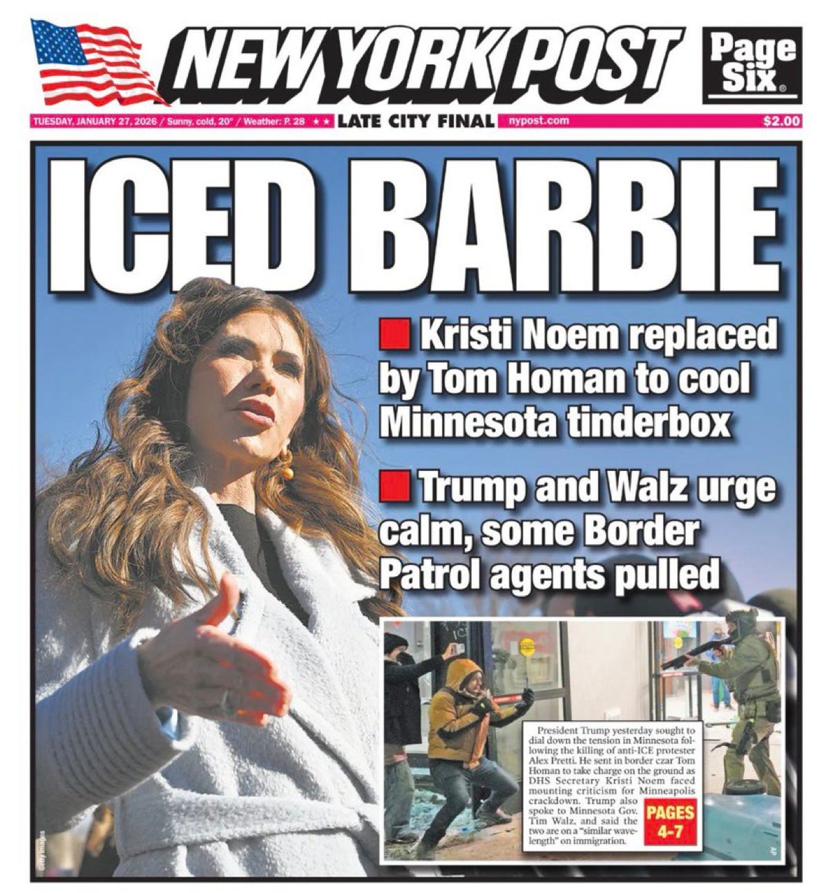 Axios is reporting tonight that “the big picture” is that “Trump wants a peace-with-honor withdrawal from Minnesota that doesn't look like his immigration surge was a loss driven by botched law enforcement efforts under Bovino, and plummeting poll numbers.” “Botched law enforcement efforts” is apparently a more delicate way of saying the murder of two American citizens in Minneapolis and countless assaults and constitutional rights violations committed against other people.