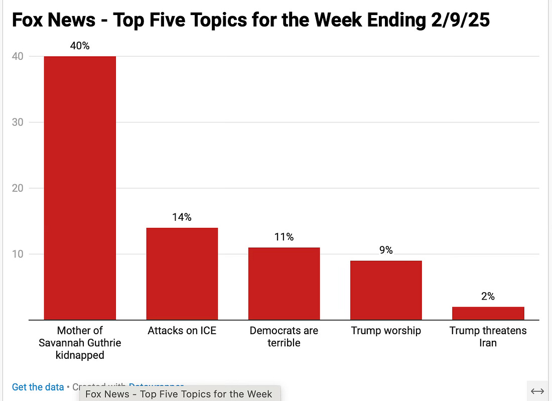 By this time last week Fox News dedicated entire commercial free hours to the disappearance of Nancy Guthrie, the 84-year-old mother of The Today Show host Savannah Guthrie.