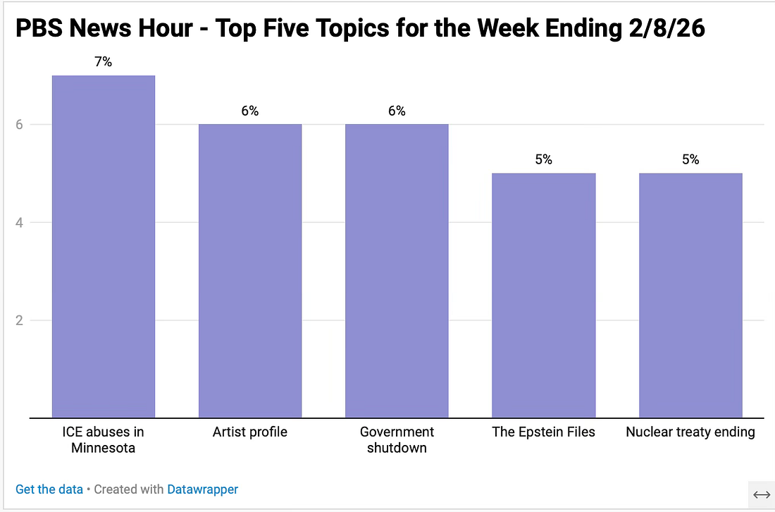 Every week I compare the hours I’ve watched on Fox News to five hours of the PBS News Hour. The following list are stories that PBS covered that Fox News did not. The list has been truncated for space. Source - PBS News Hour transcripts.