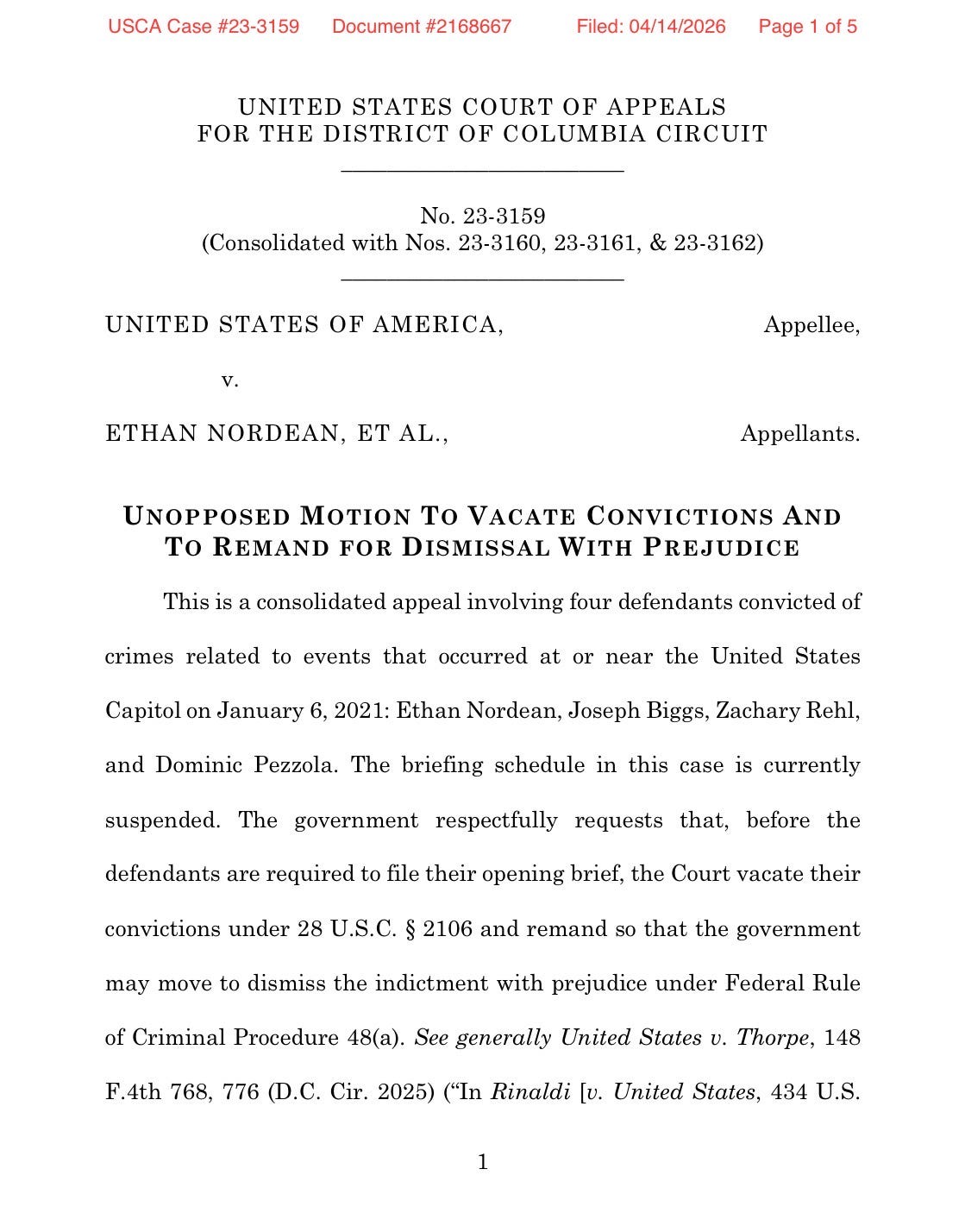 first briefs are due. Pirro explained “The government respectfully requests