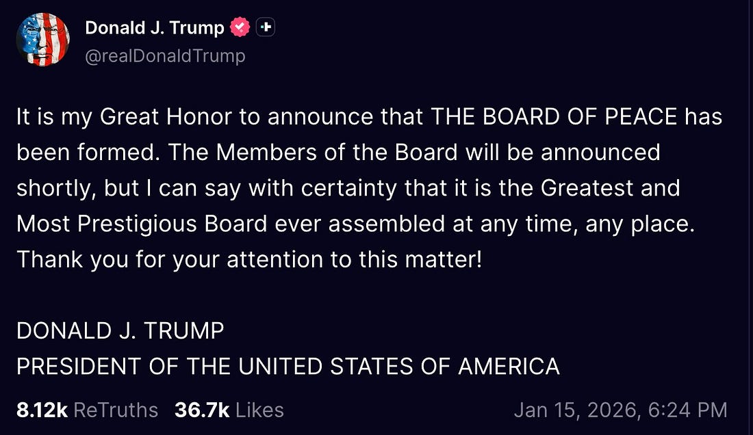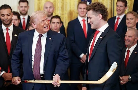 what in the world is this demented old coot blithering about? a BOARD OF PEACE? to do what? oh, how lovely. the chaos-addicted maniac who kidnapped Maduro, is threatening to fuck Greenland’s shit, and who is setting his own personal gestapo loose to kill and maim Americans, he’s cooked up some cockamamie BOARD OF PEACE — as one does, when one is a delusional fucking lunatic. tell me about all these GREAT and PRESTIGIOUS board members — are they big and strong, with tears in their eyes? are they in the room with us right now? I can’t wait to find out who’s on this board. Joseph Goebbels? Genghis Khan? Vlad the Impaler? you know exactly where Donny’s going with this peace board — he’s going to invent his own personal peace prize and award it to himself. you can put money on it. the Nobel Diapershittingest Buffoon Prize wasn’t the only gift given to Donny yesterday. after meeting with Machado, Donny hosted the Florida Panthers, winners of the 2025 Stanley Cup. the Panthers presented him with a golden hockey stick — because of course they did. you can never go wrong flattering Donny with some gaudy gold-plated crap. maybe Donny will let the Panthers run Venezuela now. before you watch this next clip, answer me this: why the fuck are the Florida Panthers all dressed like Dear Leader? look at them, in their stupid blue suits and red ties. I had no idea that the entire team was made up of MAGAfied cultists. no wonder Florida’s official motto is The Dumbfuck State. “good looking people. young, beautiful people. I hate them. you hate standing here with all this, uh, this power behind you. but I got power too. it's called the United States military. I don't care.” what a supreme fucking asshole. I’ll bet Donny really does hate standing next to people who are stronger, better looking, and more accomplished than he is. actual winners, who don’t have to whine about not getting a prize. ‘I got power, it’s called the military.’ oh, do please fuck straight off. this isn’t how confident leaders talk. this is how insecure weaklings talk. this is how a runty little banty rooster whose tyrant Klansman father told him he would always be a piece-of-shit loser talks. here’s a fun thing you can do to make current events a little more tolerable: every time Donny boasts about one of his imaginary accomplishments, just add ‘in my pants’ to the end of it. I have a golden hockey stick. in my pants. I stopped eight wars. in my pants. I won the peace prize. in my pants. I won the 2020 election. in my pants. I have an army. in my pants. I have a Board of Peace. in my pants. I lowered the price of gas. in my pants. now, that last one I can believe. Donny’s pungent ass music has always been free for the taking. |