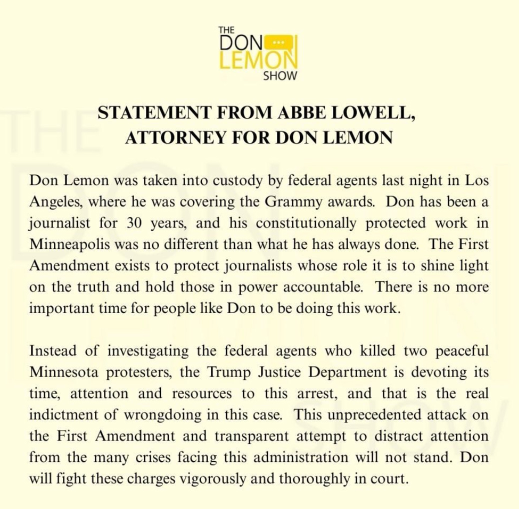 If Don Lemon can be arrested for doing his job, then journalism itself is no longer safe, and silence, at this moment, is exactly what this administration is counting on.