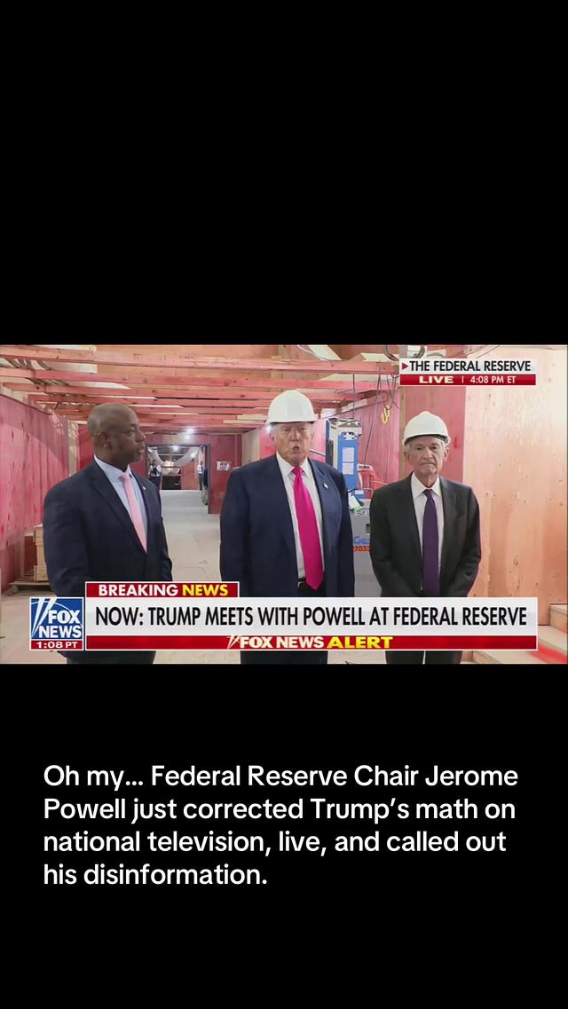 Chairman Powell immediately read the play and corrected Trump’s math, live, before a Fox News audience and called out his disinformation.
